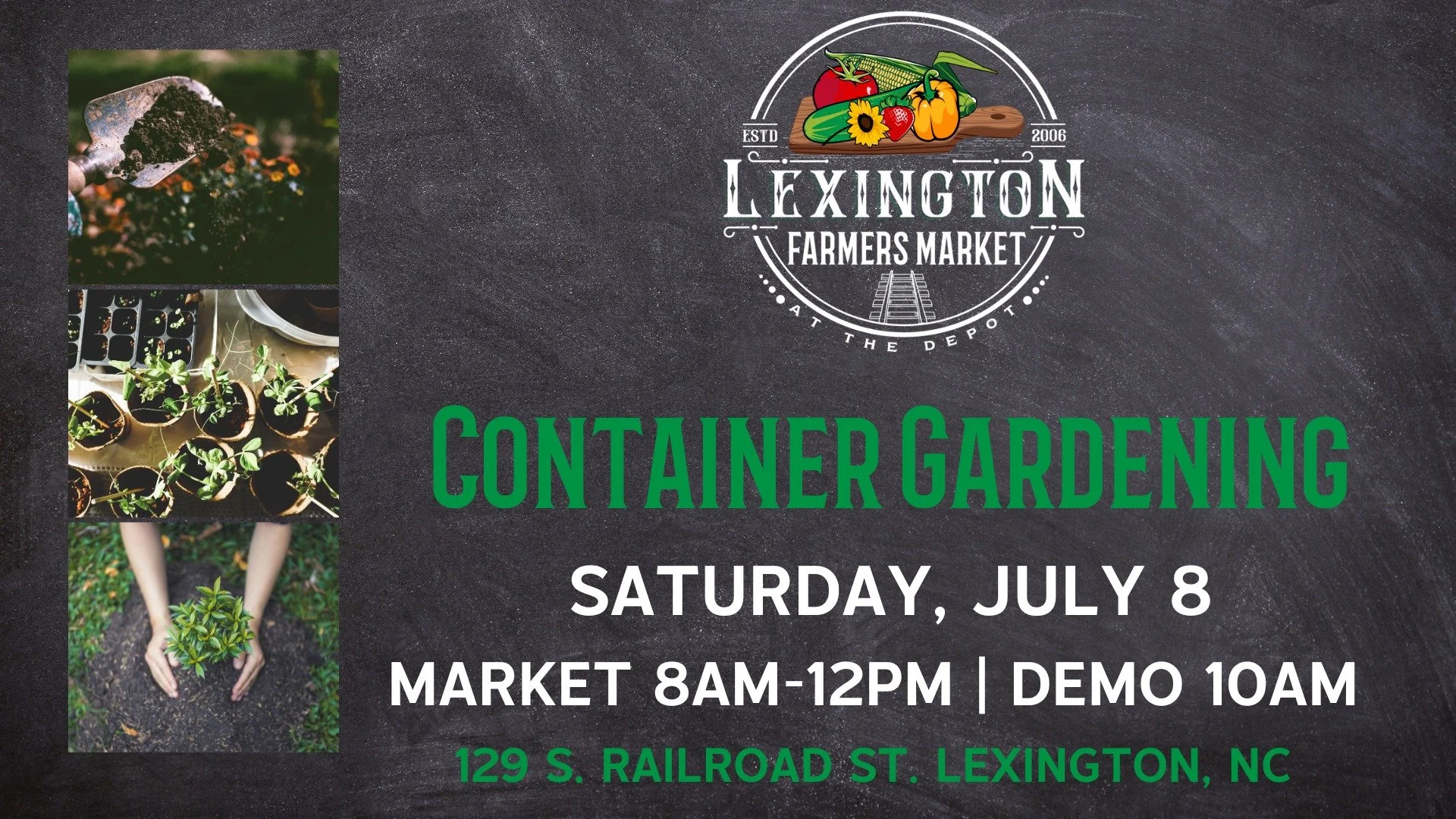Intered in learning how to grow fruits and vegetables in a container? Then join the Lexington Farmers market demo! Starting at 10am, the Master Gardeners will begin their demo including tips on a variety of containers (pots, straw bales, window boxes etc.) along with examples. Bring your questions for them!