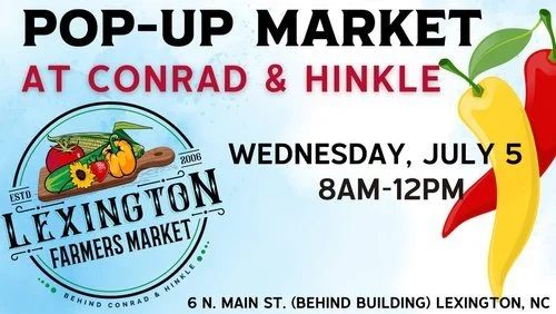 Lexington Farmers Market is back at Conrad & Hinkle! As you go around the back of the building you will see there are vegetables, fruits, meats, eggs, dairy, pastries, jams, bread and other items available for purchase. All products sold at the market are grown, baked or made by your local vendors!