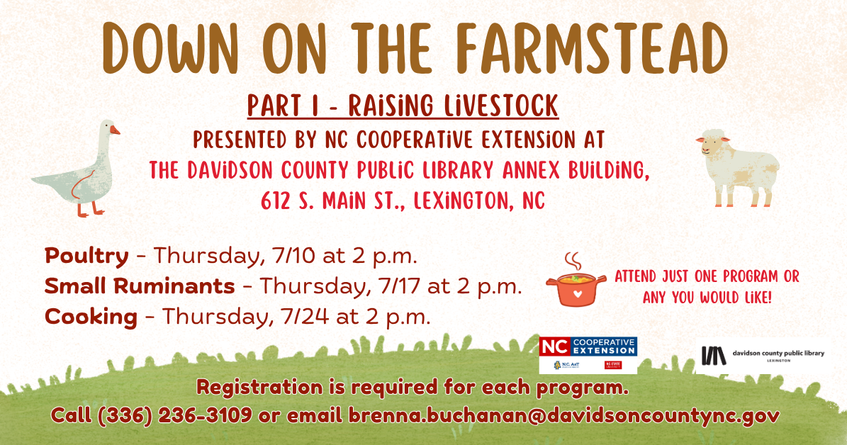 Call (336) 236-3109 or email brenna.buchanan@davidsoncountync.gov to register.